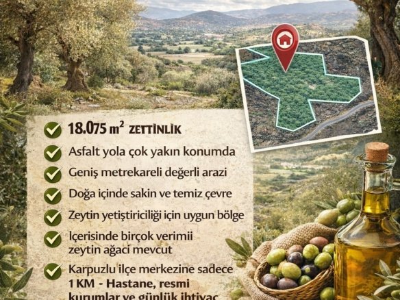 🌿 Aydın Karpuzlu Merkezine 1 KM | 18.075 m² Asfalt Yola Yakın Verimli Zeytinlik | Yatırım ve Hobi Fırsatı