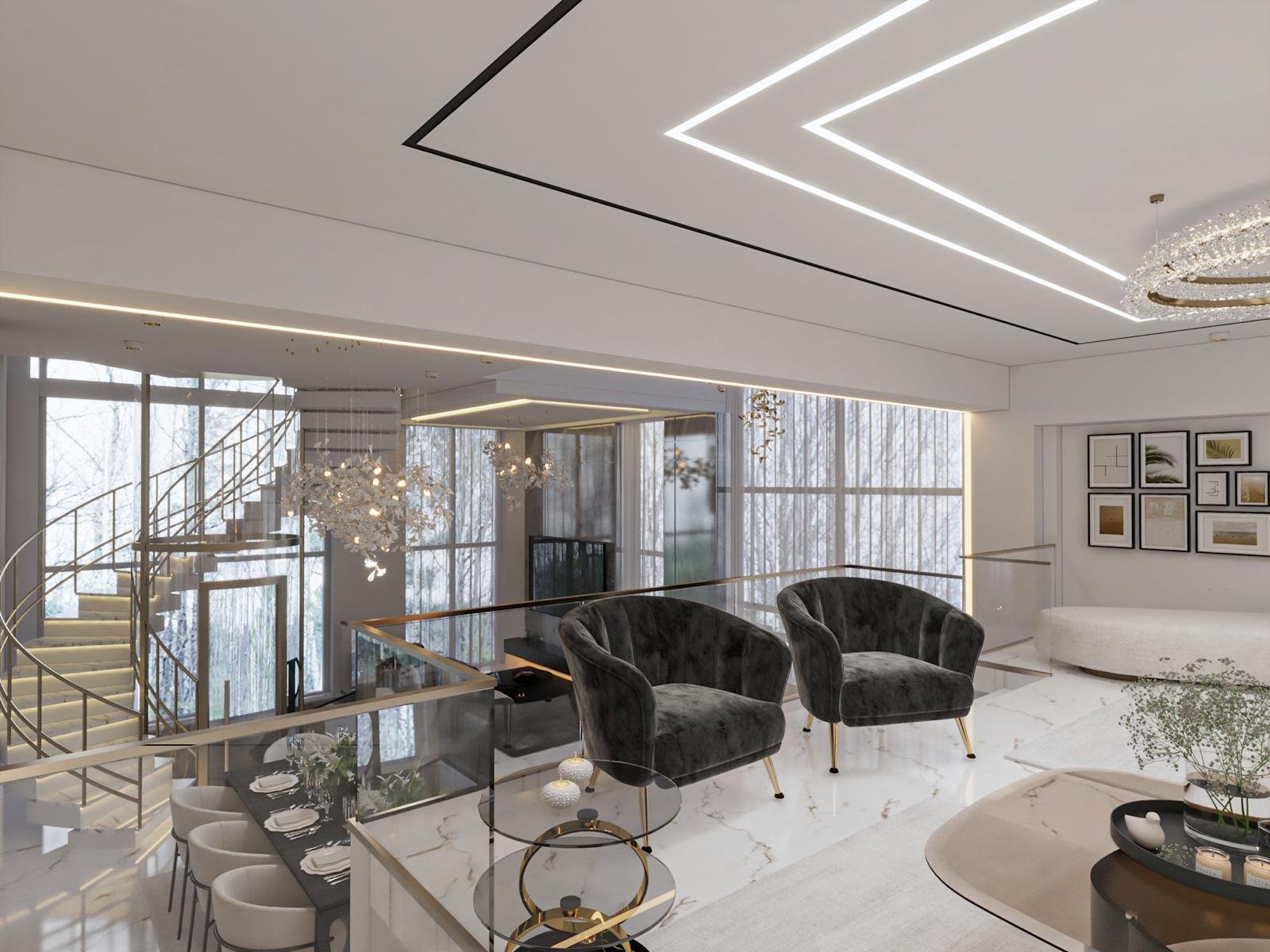Modern mimari, yüksek tavanlar ve geniş hacimler