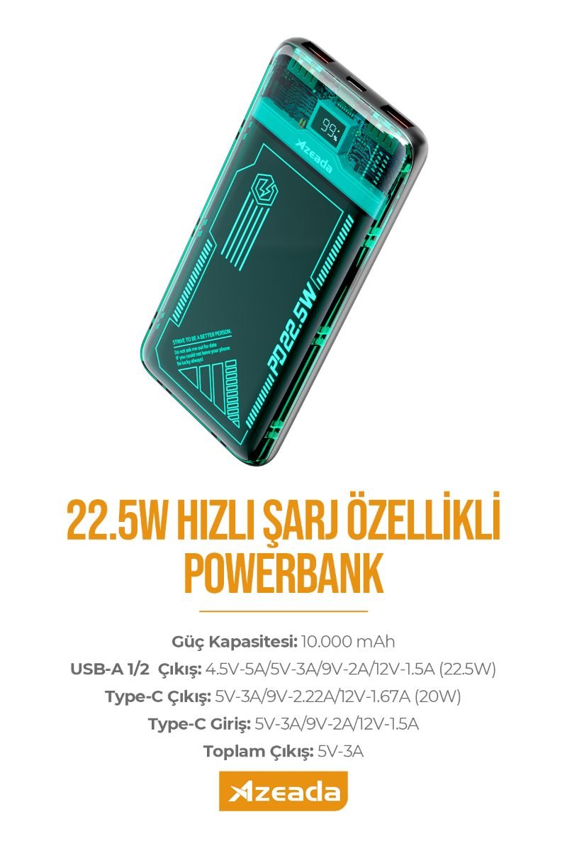 “Azeada AZ-P17 22,5W 10000mAh Power Bank” için yorum yapan ilk kişi siz olun