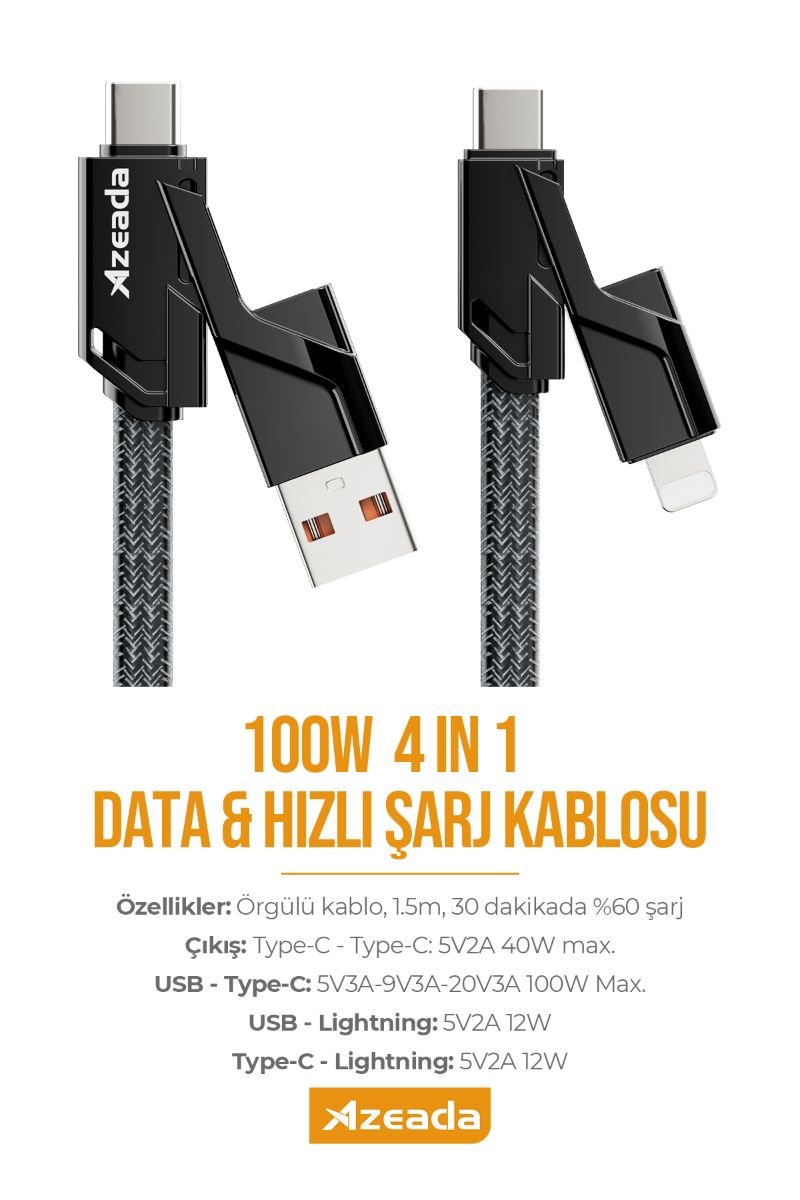 Azeada PD-B96th 4’lü Data Kablosu | Tüm Cihazlar İçin Tek Kablo