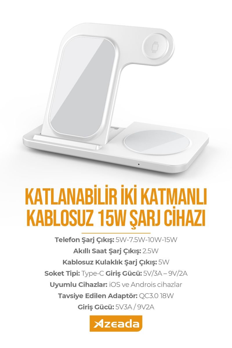 Azeada PD-W8 Wireless Magsafe 3in 1 15 Watt Sarj Cihazi