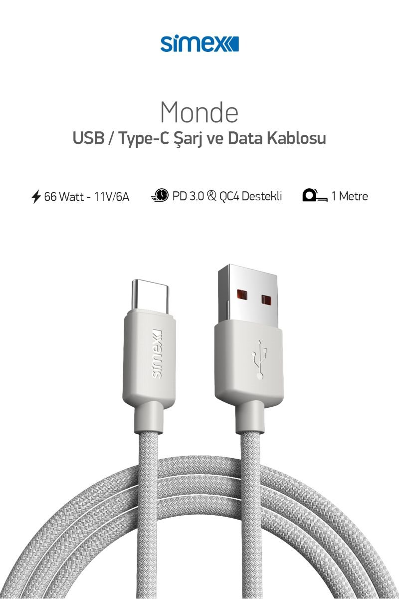 Simex USB to Type-c SPK-10 Monde 1mt 66W Data Kablosu